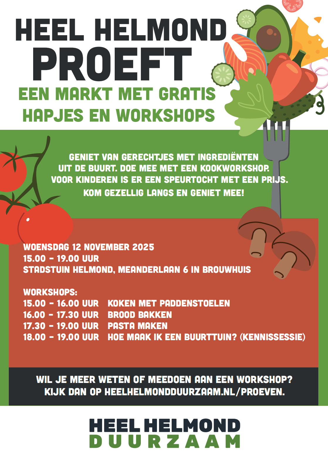 Geniet van gerechtjes met ingrediënten uit de buurt. Doe mee met een kookworkshop. Voor kinderen is er een speurtocht met een prijs. Kom gezellig langs en geniet mee!Â
